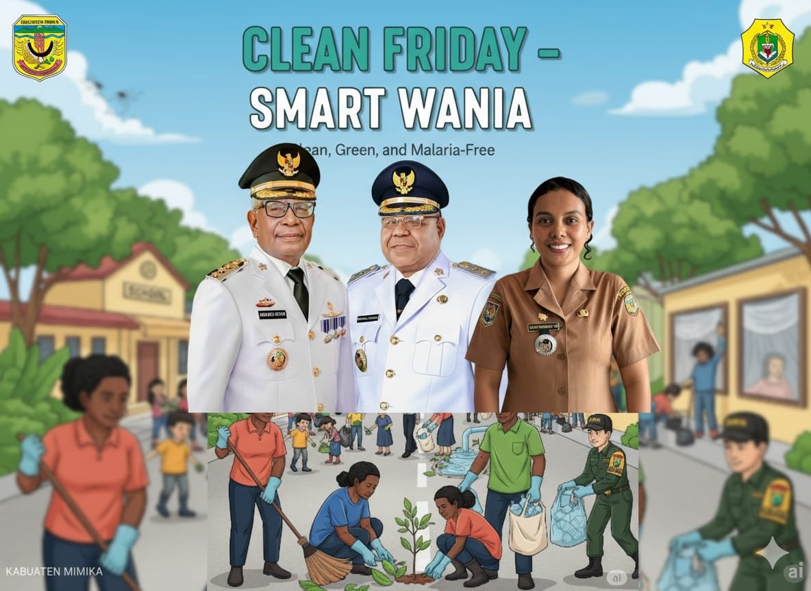 Timika,papuaglobalnews.com – Bupati Mimika Johannes Rettob dijadwalkan melaunching Clean Friday-Smart Wania yang digagas Pemerintah Distrik (Pemdis) Wania Kabupaten Mimika pada Jumat 29 Agustus 2025. Peluncuran program Clean Friday-Smart Wania dengan tagline ‘Clean, Green, and Malaria Free’ dimulai pukul 08.00 WIT dipusatkan di halaman Kantor Kelurahan Wonosari Jaya SP4.