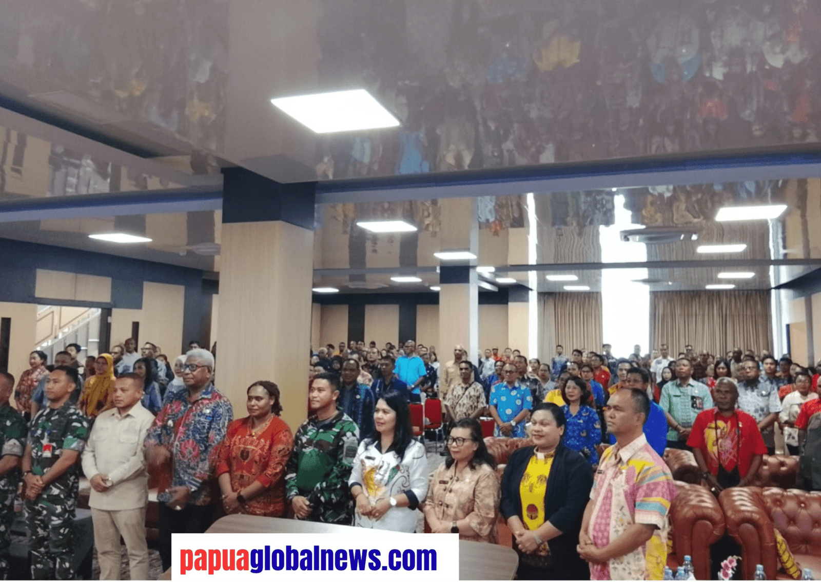 Bupati Johannes Rettob foto bersama pimpinan OPD di lingkup Pemerintah Kabupaten Mimika setelah membuka Forum Perangkat Daerah di Aula Bappeda Mimika, Kamis 26 Maret 2026. (Foto – Anton Juma Songa/papuaglobalnews.com).