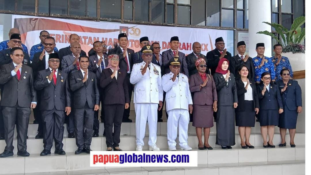 Timika,papuaglobalnews.com –  Pemerintah Kabupaten Mimika Provinsi Papua Tengah melaksanakan upacara memperingati Hari Otonomi Daerah ke XXX yang jatuh pada 25 April 2026 di Lapangan Pusat Pemerintahan SP3, Senin 27 April 2026.