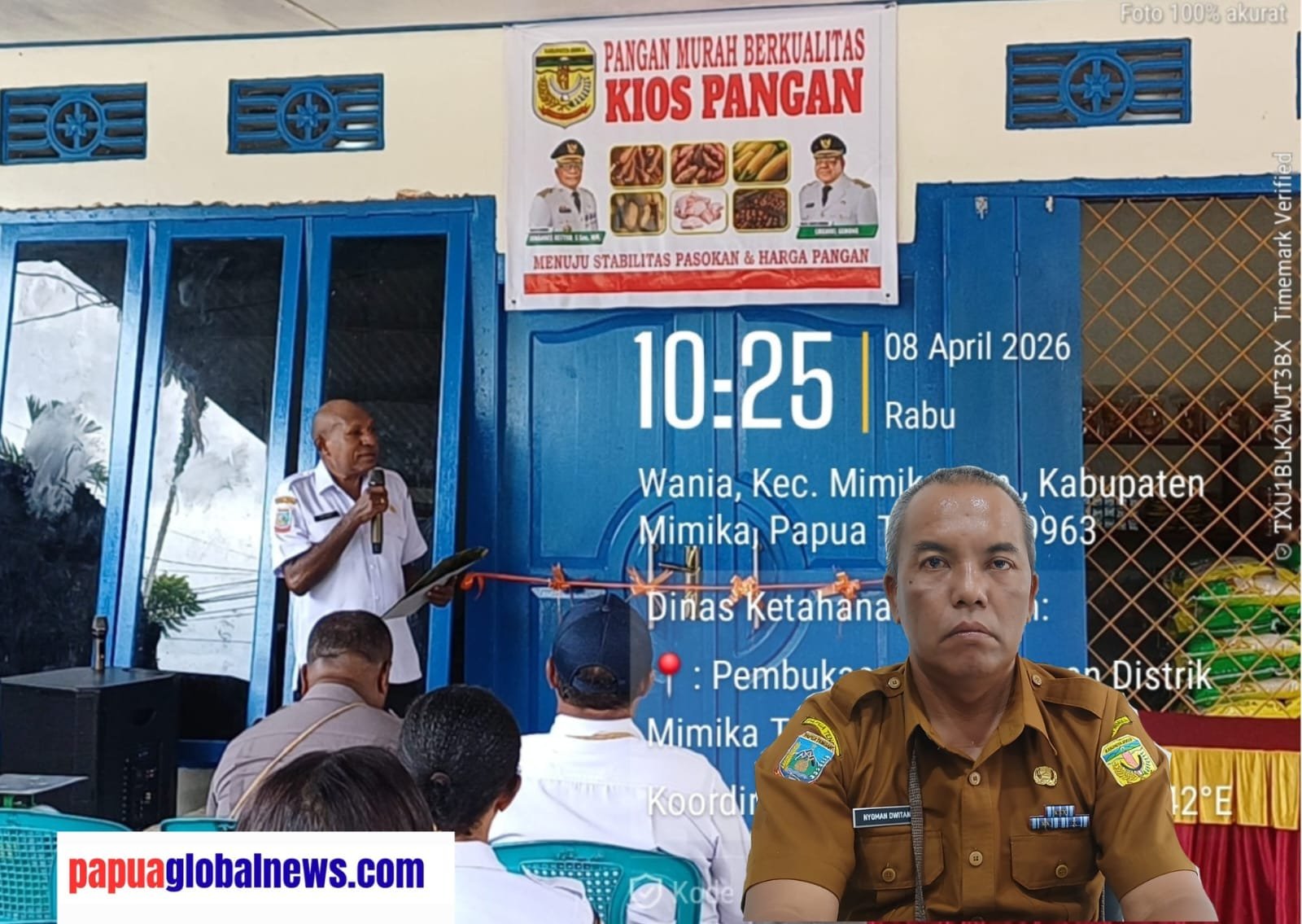 Timika,papuaglobalnews.com – Usaha mendekatan pelayanan kebutuhan dasar masyarakat yang murah tanpa mengabaikan kualitas terus dilakukan oleh Pemerintah Kabupaten Mimika melalui gerakan inonasi “Si Mace Muda” Dinas Ketahanan Pangan (DKP). Salah satu inovasi non teknologi yang diterapkan dengan membuka satu lagi Kios Pangan di Mapurujaya ibu kota Distrik Mimika Timur. Peluncuran dan peresmiannya telah dilaksanakan oleh Gat Tebai, Kepala DKP Mimika pada tanggal 8 April 2026. Lokasinya sangat strategis persis di mata jalan poros Timika-Pomako.