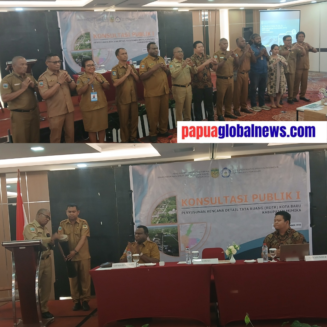 Timika, papuaglobalnews.com – Dinas Pekerjaan Umum dan Penataan Ruang (PUPR) Kabupaten Mimika menggelar konsultasi publik perdana penyusunan Rencana Detail Tata Ruang (RDTR) Kota Baru Mimika, Senin 17 November 2025. Kegiatan yang melibatkan pimpinan Organisasi Perangkat Daerah (OPD), perwakilan LSM, perwakilan Lemasa, serta unsur terkait lainnya ini berlangsung di salah satu hotel di Kota Timika.