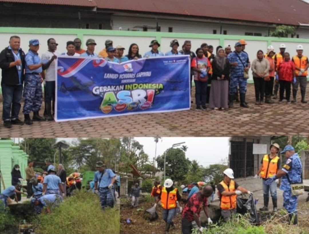 Timika,papuaglobalnews.com – Dalam upaya menyukseskan Gerakan Nasional Indonesia ASRI (Aman, Sehat, Resik, dan Indah), personel Lanud Yohanis Kapiyau Timika mengikuti kegiatan Jumat Bersih di Kampung Nawaripi, Distrik Wania, Kabupaten Mimika, Papua Tengah, Jumat 27 Februari 2026.