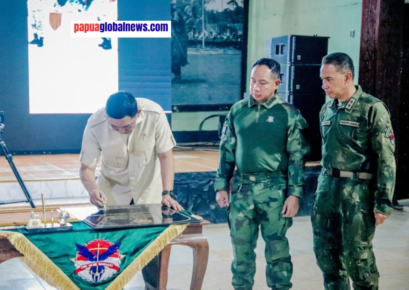 Peresmian ini ditandai dengan penandatanganan prasasti oleh Menhan didampingi Panglima TNI Jenderal TNI Agus Subiyanto dan Panglima Komando Operasi (Pangkoops) Habema Mayjen TNI Lucky Avianto.