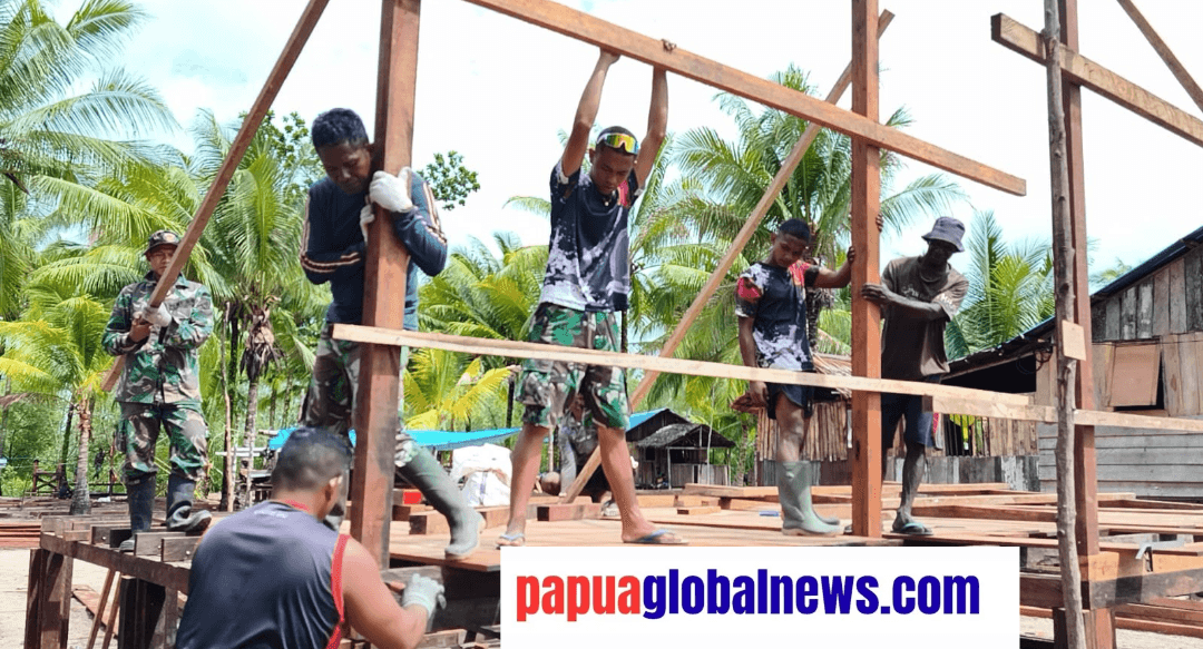 Keakwa,papuaglobalnews.com – Gotong royong Satgas TMMD ke-128 Kodim 1710/Mimika bersama warga Kampung Keakwa dalam membangun rumah milik Niko Makare, salah satu penerima manfaat program, terus menunjukkan progres yang signifikan.
