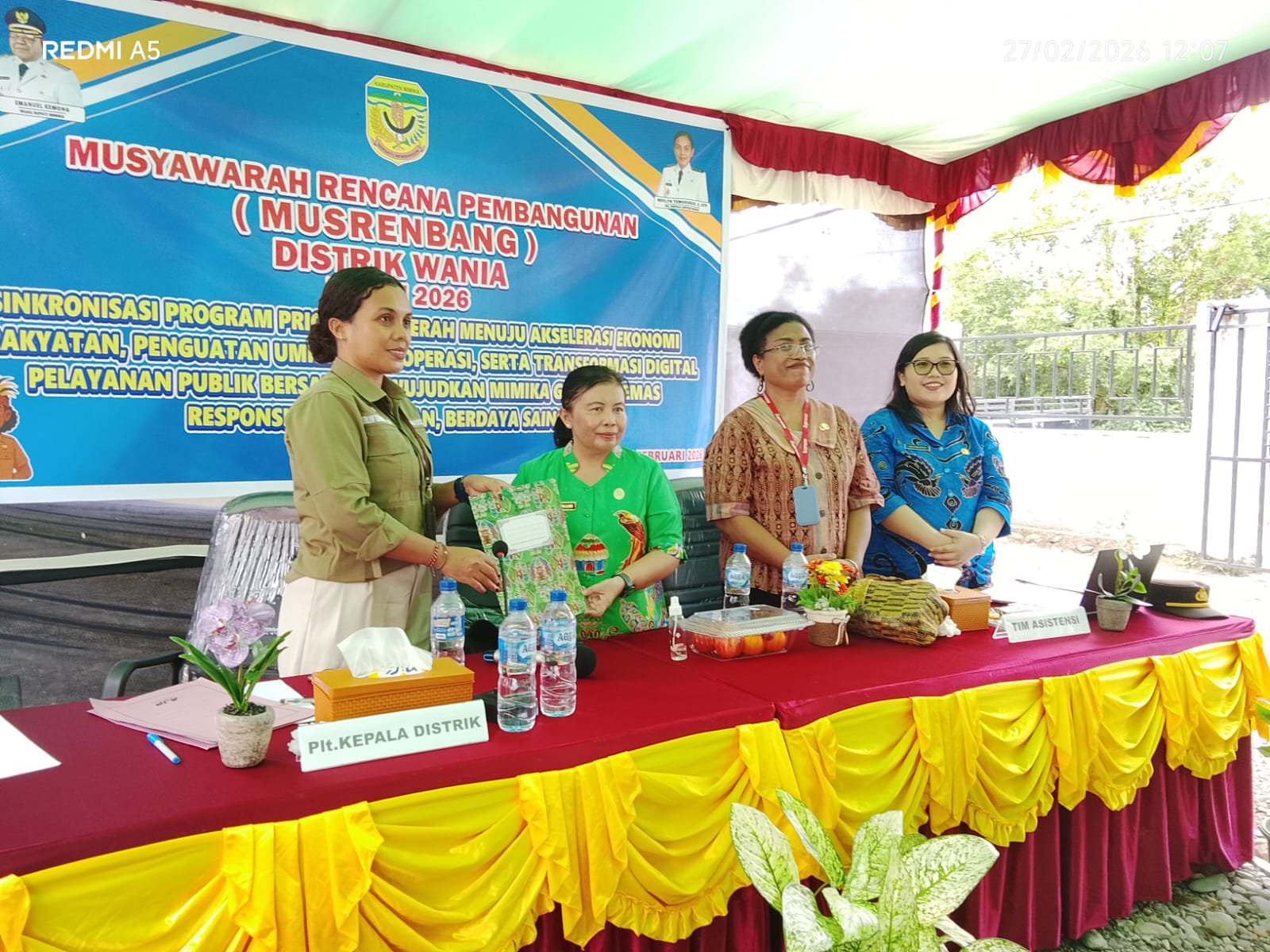 PEMERINTAH Distrik Wania sukses melaksanakan Musyawarah Rencana Pembangunan (Musrenbang) tingkat distrik tahun 2026 yang dipusatkan di halaman Kantor Distrik Wania, Jumat 27 Februari 2026.
