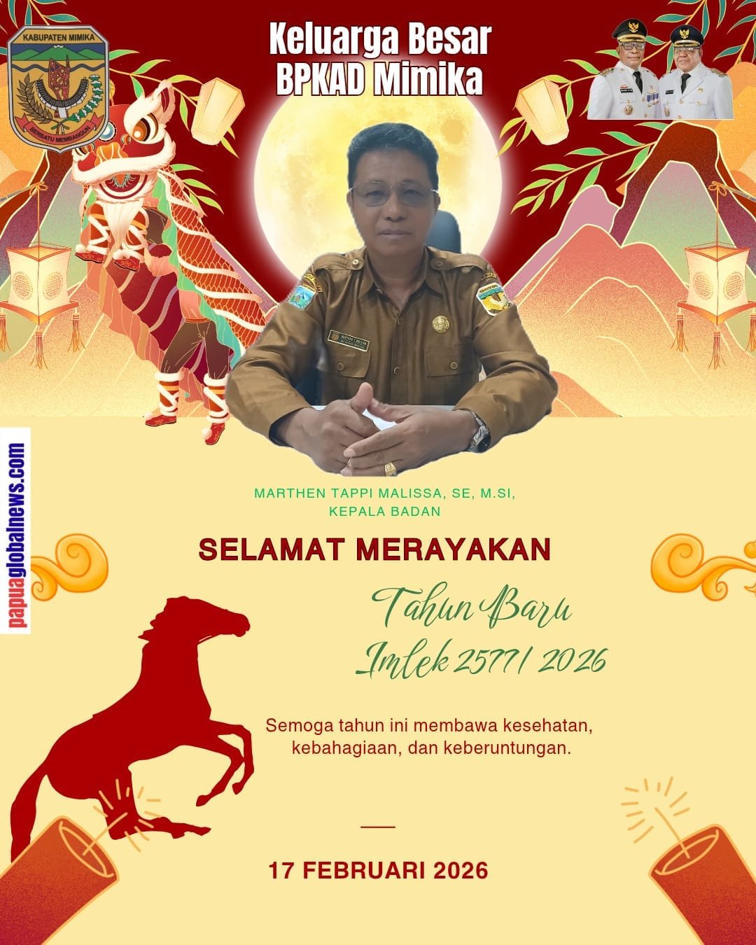 Ia menyampaikan terima kasih atas respons cepat Bupati yang telah menerima panitia dengan baik serta siap memfasilitasi kebutuhan turnamen, termasuk penggunaan Stadion Wania Imipi SP1 di Kelurahan Kamoro Jaya, Distrik Wania.