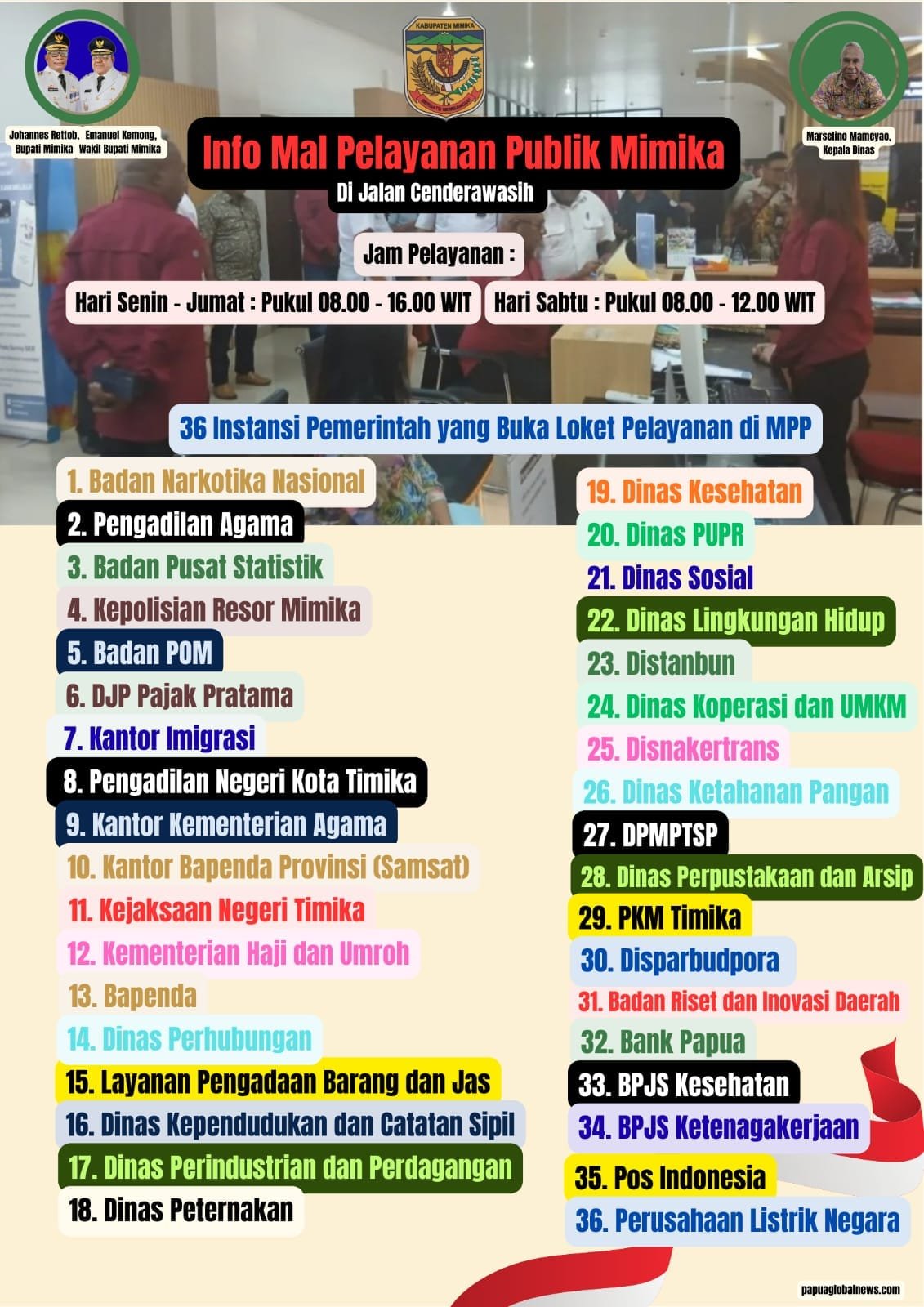 Timika,papuaglobalnews.com – Pemerintah Kabupaten Mimika melalui Mal Pelayanan Publik (MPP) Dinas Penanaman Modal dan Pelayanan Terpadu Satu Pintu Kabupaten Mimika (DPMPTSP) mencatat telah menerbitkan sebanyak 514 perizinan usaha dan non-perizinan selama periode Januari hingga Februari 2026.