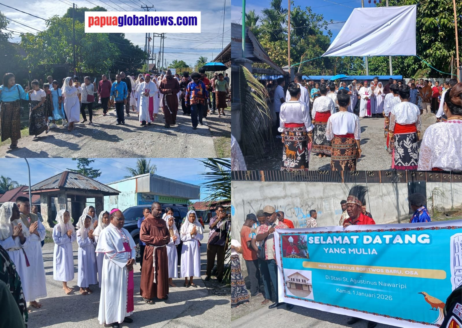 Timika,papuaglobalnews.com – Kamis, 1 Januari 2026 menjadi momen bersejarah dan penuh makna bagi umat Katolik di Stasi Santo Agustinus Nawaripi, Paroki Santo Stefanus Sempan, Keuskupan Timika. Bertepatan dengan Hari Raya Santa Maria Bunda Allah, Uskup Timika, Mgr. Bernardus Bofitwos Baru, OSA memimpin perayaan ekaristi kudus di Gereja Santo Agustinus Nawaripi.