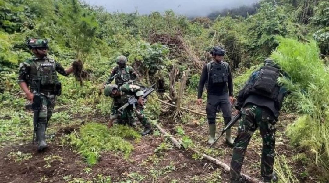 Satgas Pamtas RI-PNG Musnahkan 297 Pohon Ganja di Pegunungan Bintang
