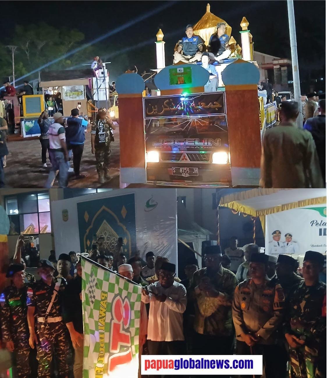 Kemeriahan malam takbiran semakin terasa dengan keikutsertaan 26 kendaraan roda empat yang dihias dengan ornamen bernuansa Islami, serta penampilan barongsai yang menambah warna kebersamaan lintas budaya.