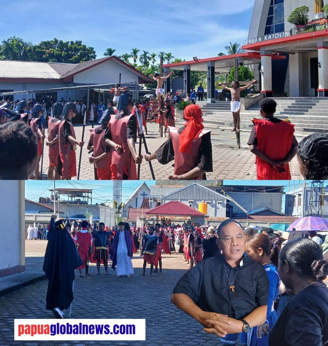 Umat Katolik St. Stefanus Sempan Timika Peringati Jalan Salib Hidup, RP. Gabriel : Penyaliban Yesus Ajarkan Keberanian, Cinta dan Pengampunan